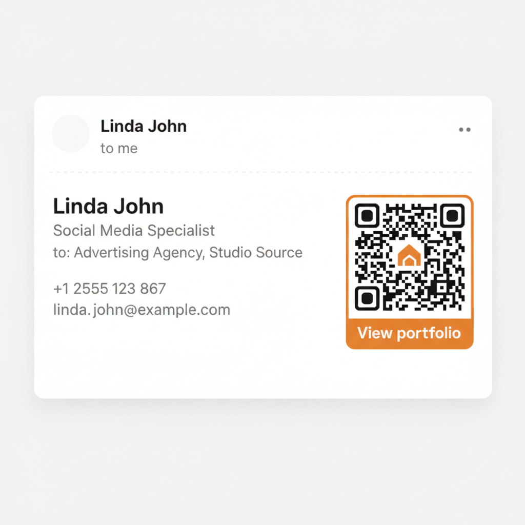Boost engagement by adding a QR code to your email footer for instant access to your contact info, socials, and website.